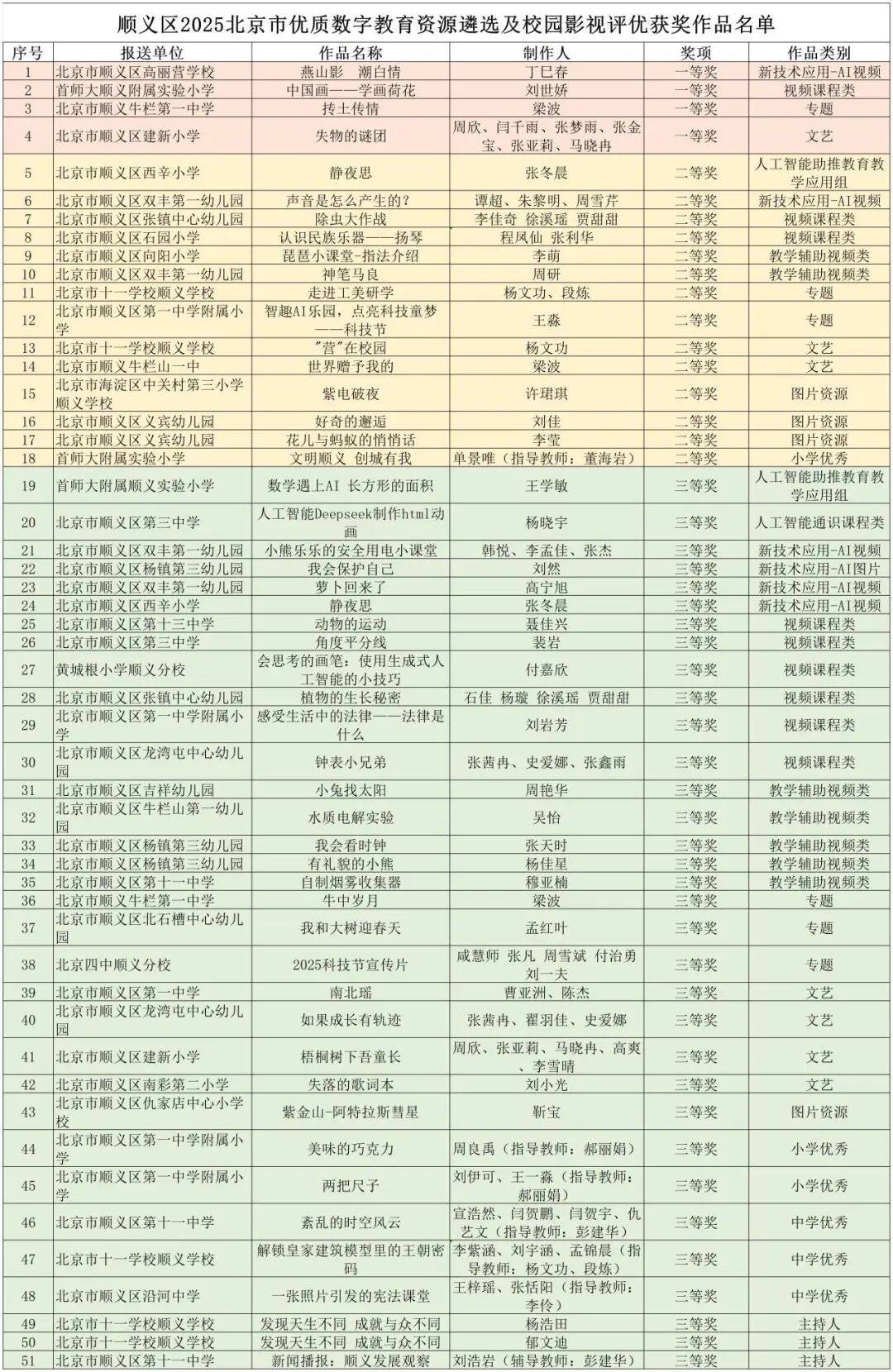 共收到参赛做品227件。顺义区荣获一等4项、二等14项、三等32项、单项提名1项,牛栏山一中梁波教员的《抟土传情》聚焦保守工艺取育人实践,充实表现了顺义区师生正在数字素养取立异实践方面的过硬程度。参选做品既聚焦立德树人底子使命,本次评优勾当区级遴选于本年6月正式启动,持续丰硕聪慧教育平台资本供给,近年来,深化人工智能等新手艺正在“五育”中的场景使用,建新小学周欣教员的微片子《失物的谜团》以切近学生糊口的剧情设想,正在市级评选中,让优良教育资本惠及更多师生,活泼展示了保守艺术教育的现代传承,近日,契合区域“人工智能+教育”步履摆设,面向全区中小学普遍搜集数字教育资本及校园影视类做品,